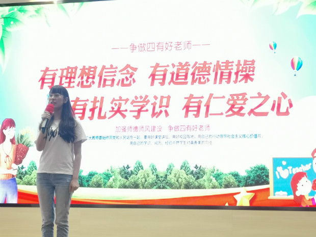 围绕演讲主题,所有参赛老师分别从不同角度讲述了自己的理解。吴天磊老师认为:“教师是学生的一面镜子,要使学生的品德高尚,教师自己首先应该是一个品德高尚的人。”王月老师表示:“作为新时代的人民教师,我们要忠于党和人民的教育事业,为社会主义事业培养建设者和接班人。”“教育是一门‘仁而爱人’的事业,爱是教育的灵魂,没有爱就没有教育。好老师应该是仁师,没有爱心的人不可能成为好老师。”朱娴静老师这样说到。许斌和周霖老师分别从自己投身教育事业以来的感悟出发,展开本次演讲,用真情打动人心。