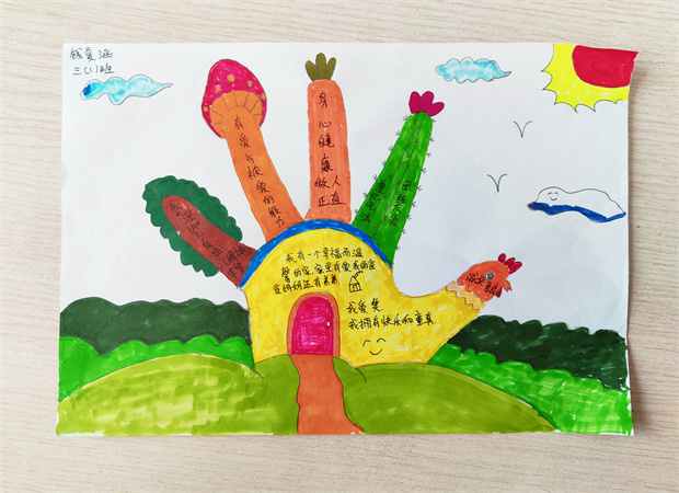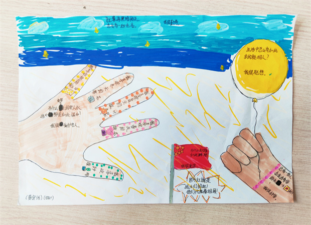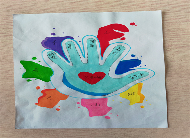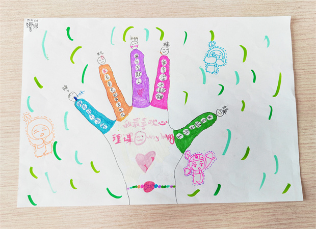 三、四年级的 “趣味手掌画” 课堂充满温情。A4 纸上,孩子们描摹出自己的手掌轮廓,掌心画着 “妈妈的拥抱”“好朋友的笑脸”“一本魔法书”,五指则郑重写下 “勇气”“善良”“钢琴” 等关键词。小小的手掌,成为装载成长宝藏的 “心之容器”,让孩子们在具象化的创作中,重新认识自己拥有的幸福与追求。