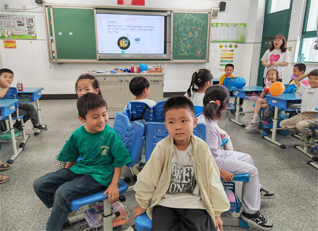 “加油!加油!” 有的班级传来此起彼伏的欢呼声,一场由学生自主设计的游戏大挑战正在火热进行。"音乐魔法阵"游戏为传统"抢凳子"注入了新活力。随着欢快的旋律响起,孩子们像一群快乐的小精灵般围着凳子轻盈舞动。当音乐戛然而止的那一刻,现场瞬间沸腾:有的小机灵鬼反应敏捷,一个箭步就占领了"安全岛";有的小迷糊还在原地转圈圈,一脸茫然。这个充满魔力的游戏,不仅考验着孩子们的反应能力,更让欢乐在教室内肆意飞扬。
