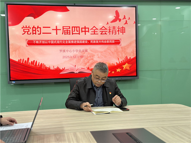 为深入领会全会精神,锚定教育强国建设目标,2025年12月19日,罗溪中心小学党支部精心组织开展了以“学习中共中央二十届四中全会精神”为主题的党日活动。会议由党支部书记潘敏主持。