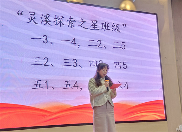 随后,刘校长、谢校长与杨主任共同为在“灵溪节”中表现突出的班级与个人颁奖。欢快的乐曲声中,获奖代表依次登台。他们手中接过的不仅是证书,更是团队协作、探索精神与创造力的见证。台下掌声如潮,欢呼涌动,集体的自豪与成长的喜悦在空气中盈盈绽放。
