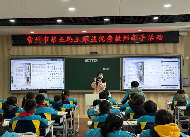 冬日暖阳浸润教坛,教研聚力共启新程。2026年1月6日下午,一场聚焦课堂转型与教师专业成长的语文教学研讨在新北区罗溪中心小学展开,语文组顺利开展了本学期第十九周校级教研活动。本次活动作为常州市王维益优秀教师牵手活动的重要环节,特邀百草园小学郑玉蓉老师共研教学,展开了一场跨文体、跨年段的课堂教学深度对话。