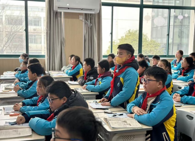活动呈现了两节体裁鲜明、风格各异的研究课。首先由本校王烨老师执教六年级文言文《伯牙鼓琴》。王老师以“灵溪石”为文化意象,勾连校园“灵溪文化节”的生活体验,创设“识知音—遇知音—祭知音”的结构化学习路径。课堂中,她巧妙融入古琴曲《高山流水》,借助AI情境再现、角色仿写、辩论交流等活动,引导学生在朗读中感悟文言韵律,在想象中体悟知音文化,实现了语言、审美与文化的深度融合。