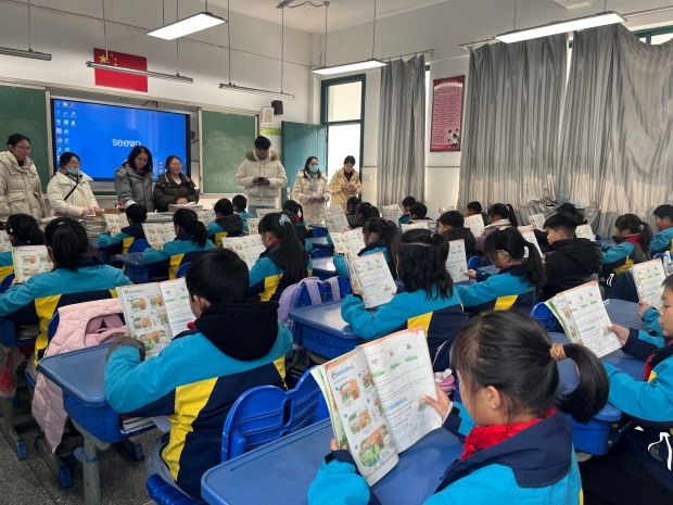 为扎实落实英语课程标准要求,激发学生英语学习兴趣,提升学生语音素养与朗读能力,1月8日下午,罗溪中心小学三年级英语整班朗读校级比赛顺利举行。本次活动以“音韵启航,声动校园”为主题,通过课文朗读与自然拼读儿歌展示两个环节,全面检阅三年级英语语音教学成果,展现学生积极向上的精神风貌。