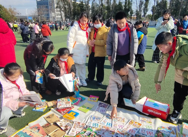 为让闲置典籍流转生香,让墨韵浸润校园方寸之地,1月9日中午,新北区罗溪中心小学的操场化作一片充满书香的文化市集,“活水汇流·书香‘易’市——灵溪流动书市”活动如期举行。灵溪学子携闲置书籍赴此书香之约,以书为媒、以“易”会友,在往来互动间尽展饱满热忱,于躬身实践中涵养良好素养,让成长与书香同行。