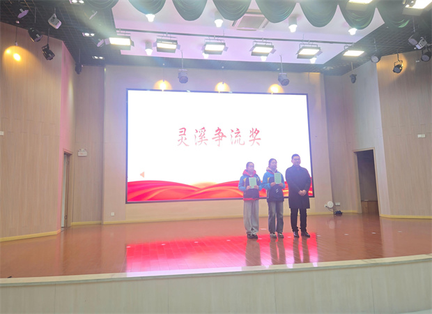 仪式亦彰显示范之力。在近期开展的“溪流争涌,汇力成海”校园系列活动中,五(4)班与六(3)班凭借团结协作、珍惜机会、全力以赴的拼搏精神,分获年级冠军。刘校长为获奖班级代表颁奖,并寄语全体同学:勤俭不仅体现在物质节约,更体现在珍惜每一次努力、凝聚每一份团队力量。这正是“灵溪精神”在校园生活中的生动写照。