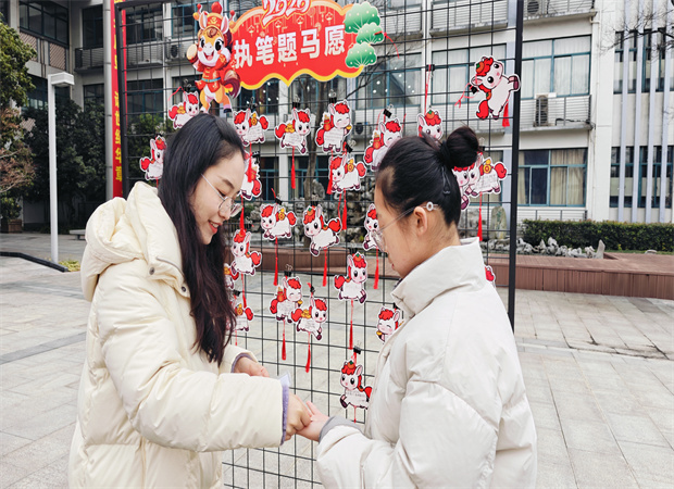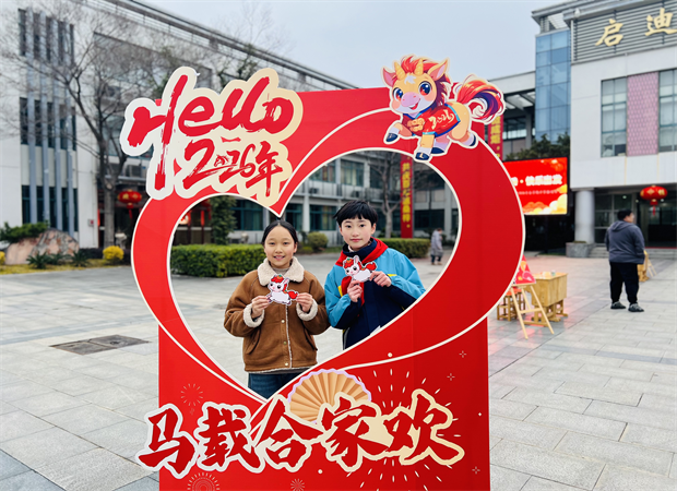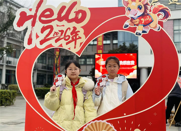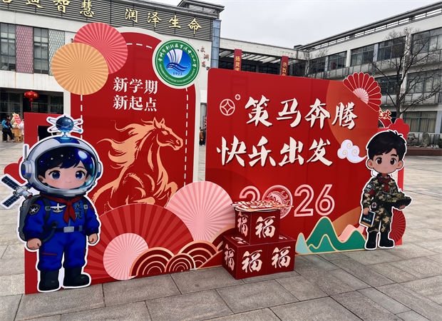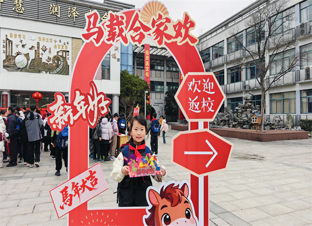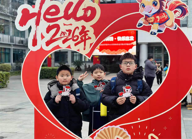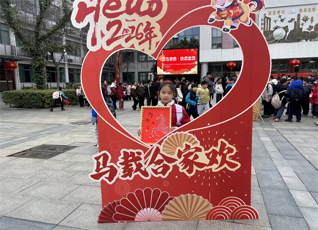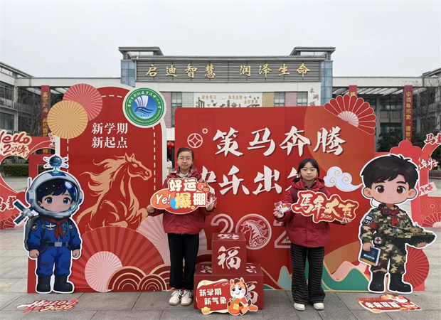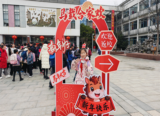 踏入校园,目之所及便是 “马载合家欢” 主题合影区。孩子们或手捧寒假里精心创作的作品、或与同窗好友并肩相依,或牵着老师的手笑意嫣然,在镜头前定格下新学期的第一张全家福。一张张稚嫩的笑脸,像春日里绽放的繁花,眼眸中闪着星光。春日的校园,因这份温暖愈发鲜活。