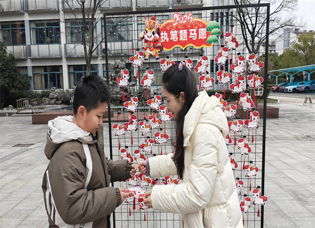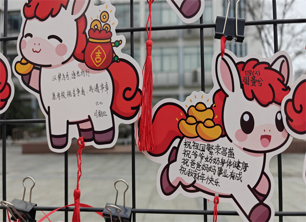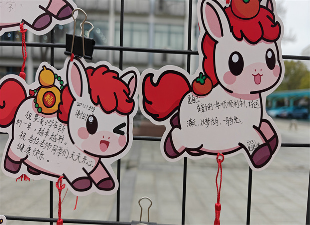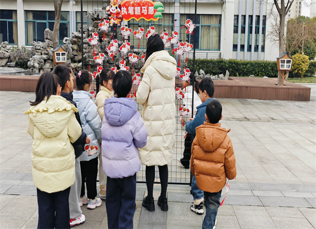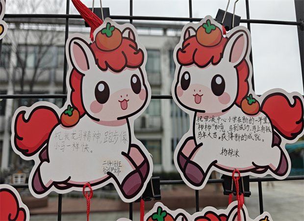 移步 “执笔题马愿” 区域,一张张小马造型的心愿卡静静铺展,笔墨纸砚整齐摆放,氤氲着淡淡的墨香。孩子们伏案而坐,小手握笔,神情认真,一笔一划皆是童心流淌,一字一句尽是梦想萌芽。每一张心愿卡,都是孩子心底最纯粹的向往,都是对新学期最美好的憧憬。各班班主任悉心甄选,将 3 份佳作选送校级展示,获选的孩子收获一枚精致的 “美・雅韵币”,成为新学期的第一份荣光。
